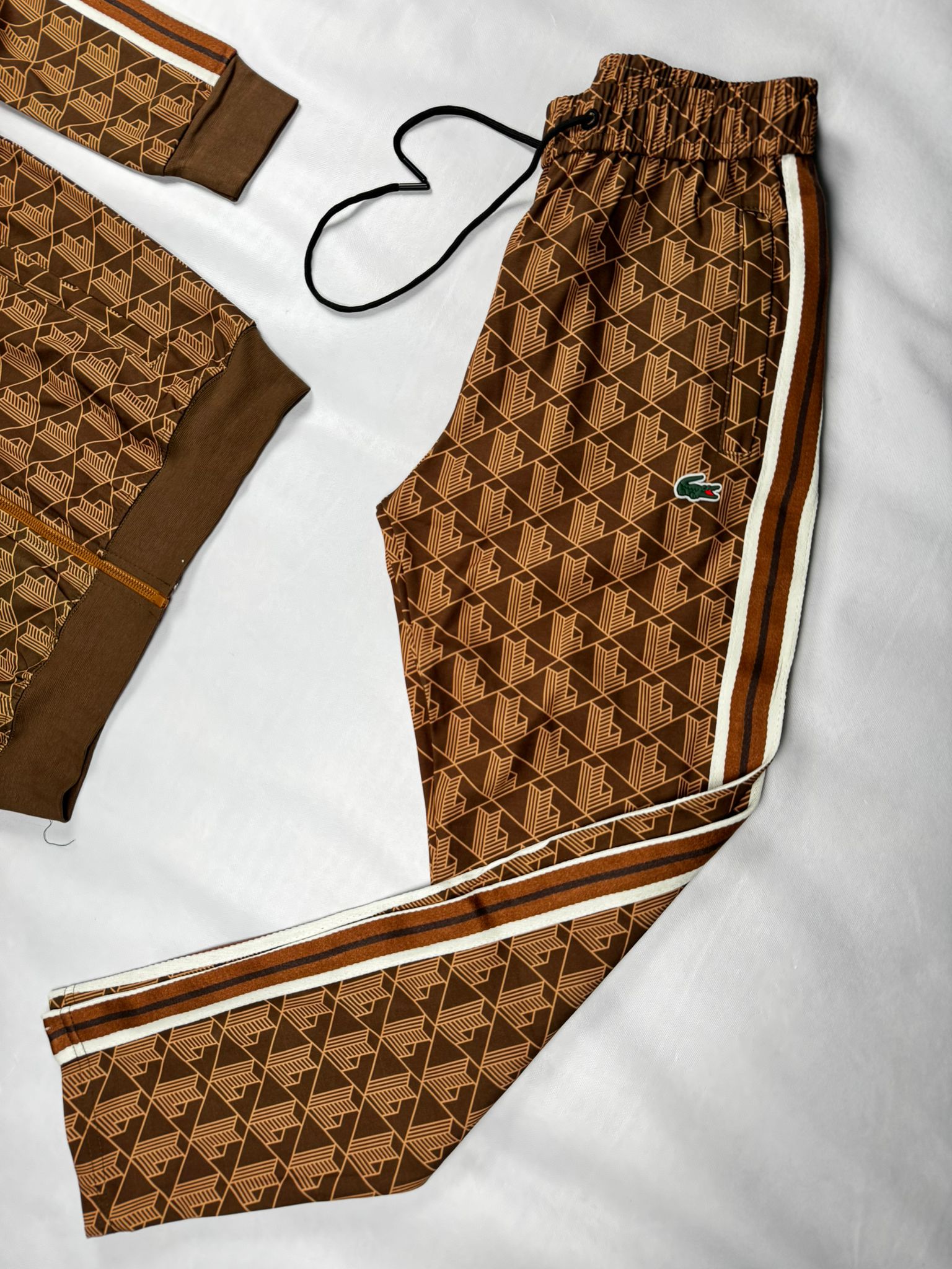 El conjunto Lacoste es la elección perfecta para quienes buscan un look urbano con el sello clásico de la marca del cocodrilo. Fabricado con materiales de alta calidad, este outfit destaca por su diseño moderno, cómodo y versátil, ideal tanto para el día a día como para un estilo streetwear más atrevido.